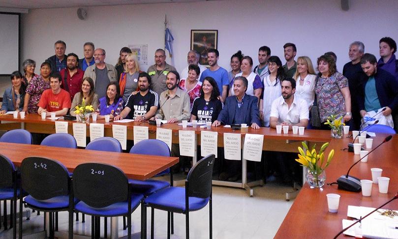 Dirigentes gremiales y políticos de partidos de izquierda, participaron activamente de la audiencia pública que se realizó en el Congreso de la Nación, apoyando al SUTEF y pidiendo la suspensión del juicio.