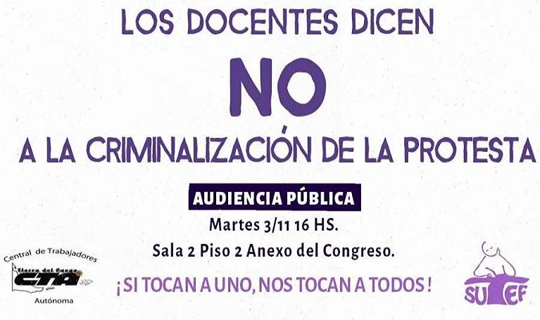 Este martes 3 de noviembre, en audiencia pública en el Congreso de la Nación, el sindicato docente SUTEF de Tierra del Fuego expondrá la situación de la causa judicial por la que se va a juzgar a trabajadores docentes y del sindicato de Camioneros.