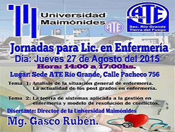 La Asociación Trabajadores del Estado organiza la Primer Jornada Provincial para Profesional en Enfermería, a desarrollarse el jueves 27 de agosto en la sede de ATE seccional Río Grande.