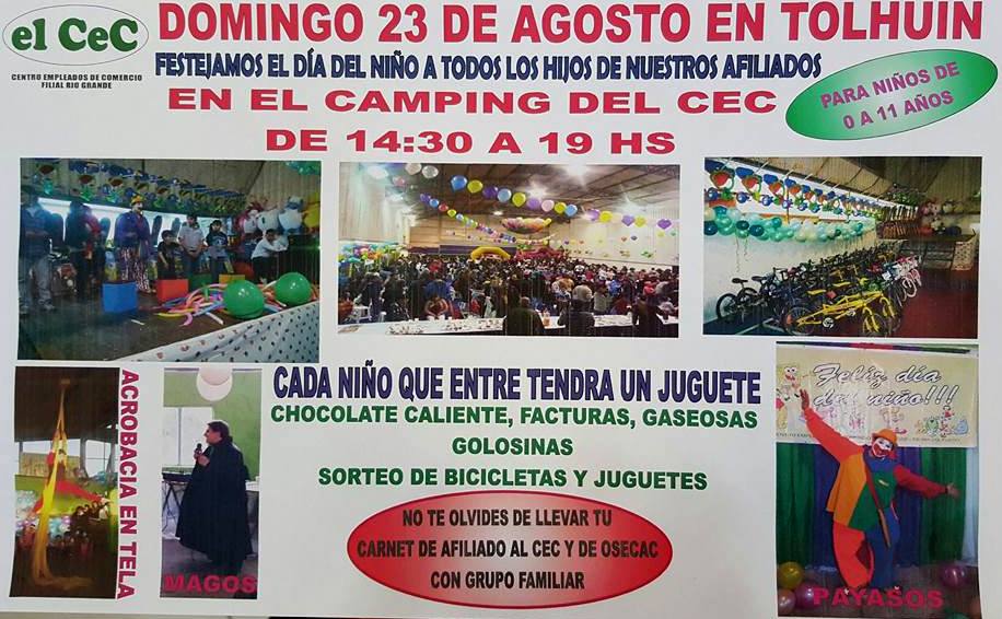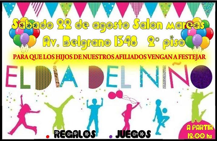 El Sindicato de Químicos y Petroquímicos de Tierra del Fuego agasajará a los hijos de los afiliados con motivo del Día del Niño el próximo sábado 22 de agosto desde las 12 horas.