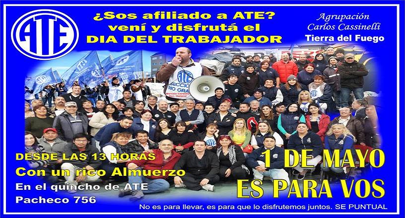 La Seccional Río Grande de la Asociación Trabajadores del Estado (ATE) agasajará a sus afiliados con un locro que se servirá en la sede sindical del Bº AGP.