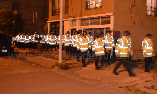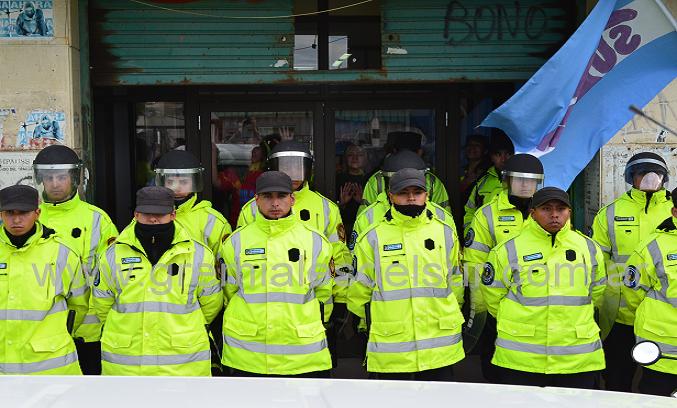 Un nutrido grupo de efectivos policías se presentaron en Rentas formando un doble cordón sobre la vereda con la clara intención de evitar la realización de la asamblea que había sido pautada para las 18 horas.