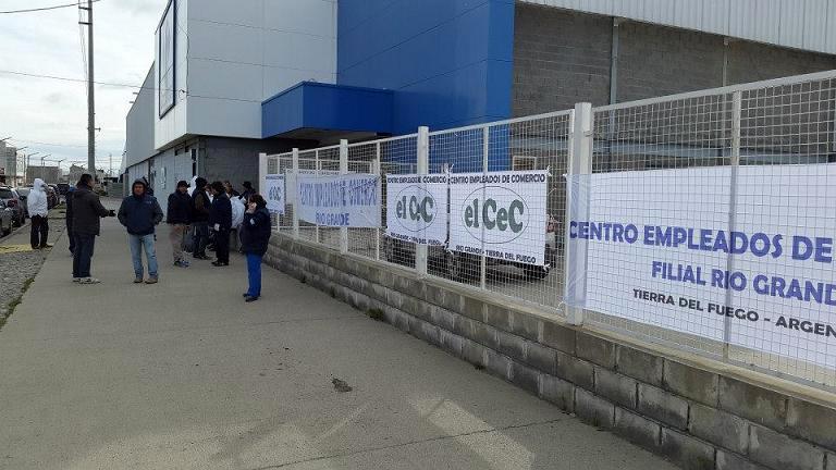 El Centro Empleados de Comercio de Río Grande realiza un paro total de actividades ante la falta de acuerdo por el bono de fin de año. La medida se cumple de manera efectiva en las dos sucursales.