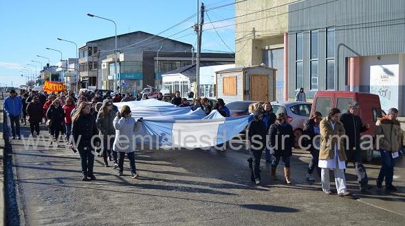 El jueves 28 de agosto SUTEF concentró en el Hospital de Río Grande, para luego marchar junto a SIPROSA hasta San Martín y Belgrano.