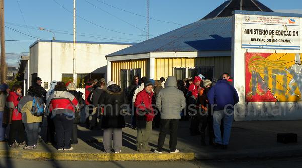 Según datos proporcionados por dirigentes del SUTEF, el paro de actividades en Río Grande tuvo una adhesión del 70%. La Delegación del Ministerio de Educación presentaba una reja con candado en el acceso principal.
