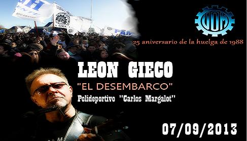 El cantante popular León Gieco se hará presente en el Polideportivo Carlos Margalot dentro de las actividades correspondientes a los festejos del “Mes del Metalúrgico” que año tras año vienen desarrollándose por parte de la organización gremial.