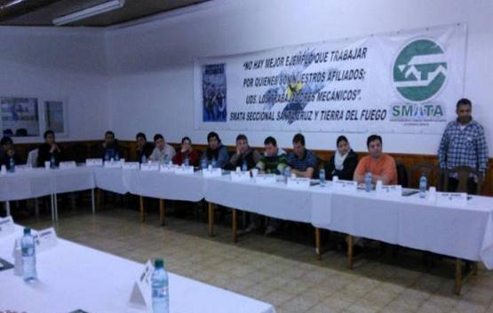 Delegados de trabajadores de la seccional Santa Cruz y Tierra del Fuego del Sindicato de Mecánicos y Afines del Transporte Automotor (SMATA), reciben capacitación sindical en Río Grande.