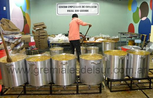 Cerca de 2000 porciones de locro se entregaron en el gimnasio del CEC a los afiliados al sindicato.