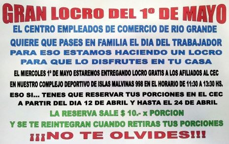 Como todos los años el Centro Empleados de Comercio de Río Grande agasajará a sus afiliados con locro para celebrar el 1º de mayo. La entrega también incluye a los afiliados de Tolhuin.