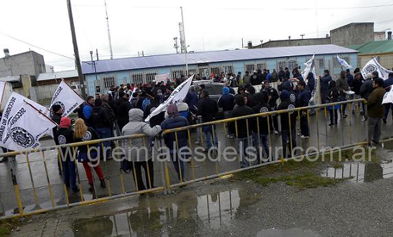 Dirigentes, delegados y trabajadores se manifestaron en la mañana de este miércoles 19 en la sede de la Secretaría de Trabajo en Río grande, mientras se desarrollaba una audiencia por el caso FAMAR