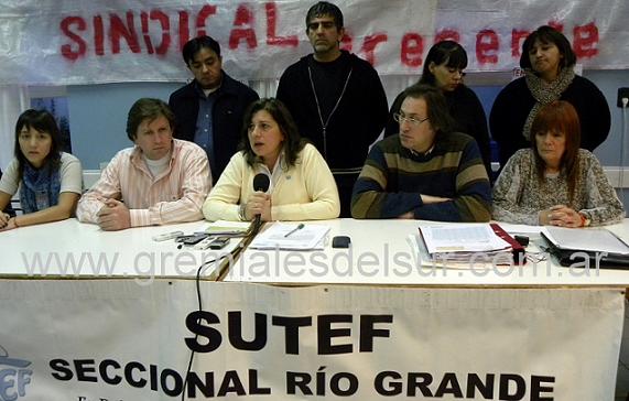 Dirigentes de la seccional Río Grande del SUTEF dieron una conferencia de prensa para expresar el repudio y el rechazo a la posición adoptada por la Conducción provincial en cuanto a la interpretación de la prorroga de mandatos.