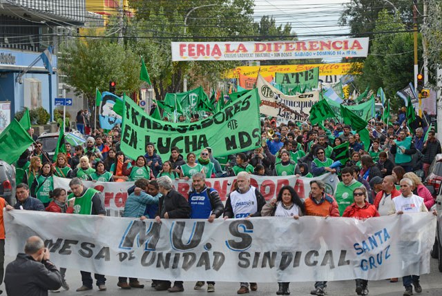 Como tenía previsto realizar la Mesa de Unidad Sindical, se llevó a cabo la movilización por sectores céntricos de la ciudad de Río Gallegos. Una nutrida concurrencia a pesar del tiempo inestable, hace prever que la semana próxima, la marcha provincial que organizan los sindicatos, puede ser una de las más numerosas que se haya visto en los últimos años.