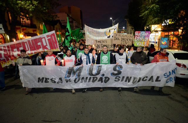 Los gremios integrantes de la Mesa de Unidad Sindical de Santa Cruz llaman a la población a concurrir a partir de las 10.30 a reunirse en las afueras del edificio legislativo para decirle no al endeudamiento propuesto por el Gobierno provincial, a cargo de Alicia Kirchner.