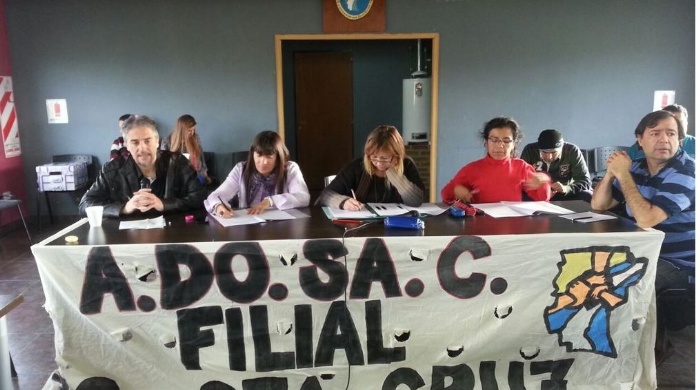Con un rechazo por unanimidad a la oferta del Gobierno de la pasada paritaria, el Congreso Provincial de ADOSAC, reunido en Puerto Santa a Cruz, determinó paro por 72 horas para los días martes, miércoles y jueves. Además facultó a la Comisión Directiva Provincial a determinar un paro por 24 horas más para el día viernes si no hay progreso en el ofrecimiento salarial.