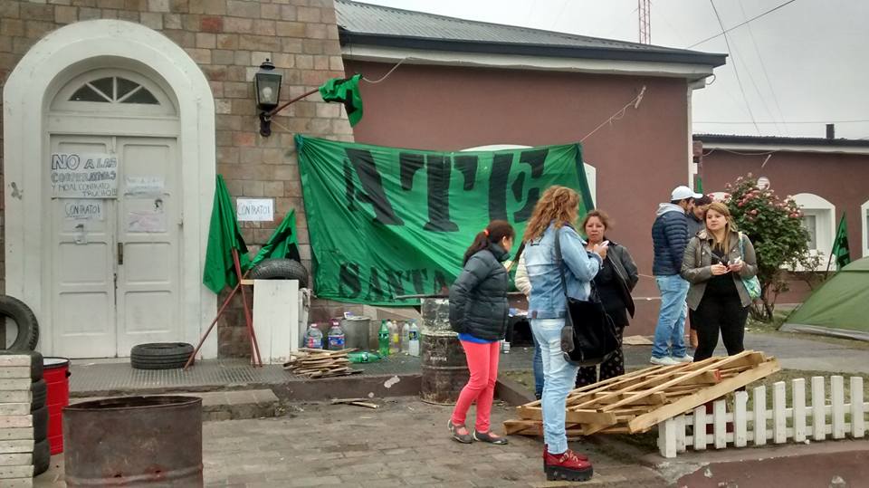Desde anoche ATE acampa frente a Casa de Gobierno en la ciudad de Río Gallegos, tras haber fracasado la negociación con los Ministros de Gobierno y Desarrollo Social.