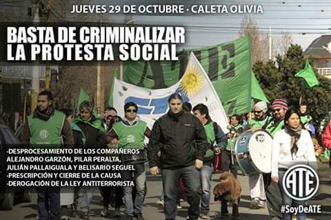 La Asociación Trabajadores del Estado de Tierra del Fuego, manifestó el apoyo a Alejandro Garzón, y al resto de los trabajadores estatales procesados en la provincia de Santa Cruz. Este jueves 29 se inicia el juicio en Caleta Olivia.