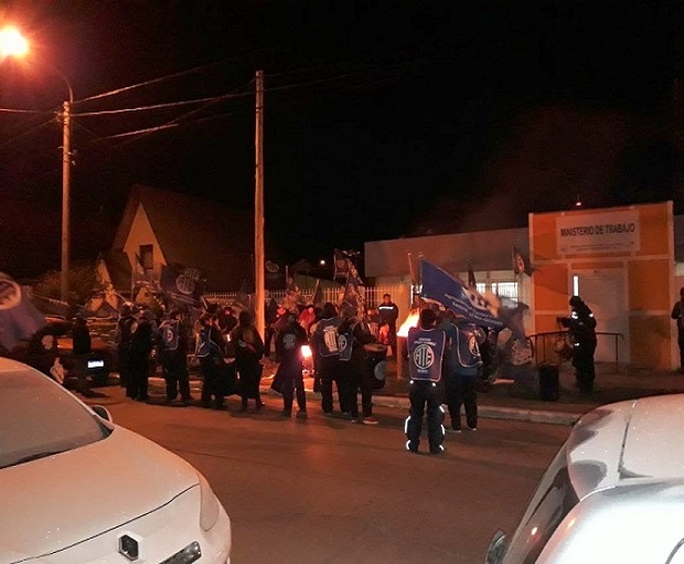 Desde las 7 de la mañana, en una jornada con sensación termina de -7° (siete grados bajo cero), la militancia de ATE se manifiesta frente a la Delegación del Ministerio de Trabajo de la provincia en la ciudad de Río Grande, a la espera de las reuniones de “mesa salarial” convocadas por el Ejecutivo provincial. Desde las 10 horas se realizará una asamblea informativa.