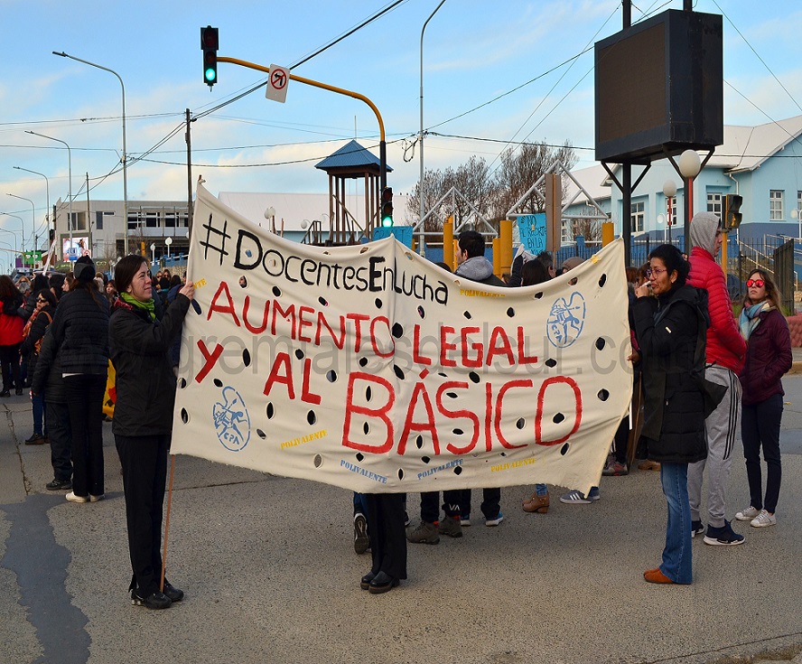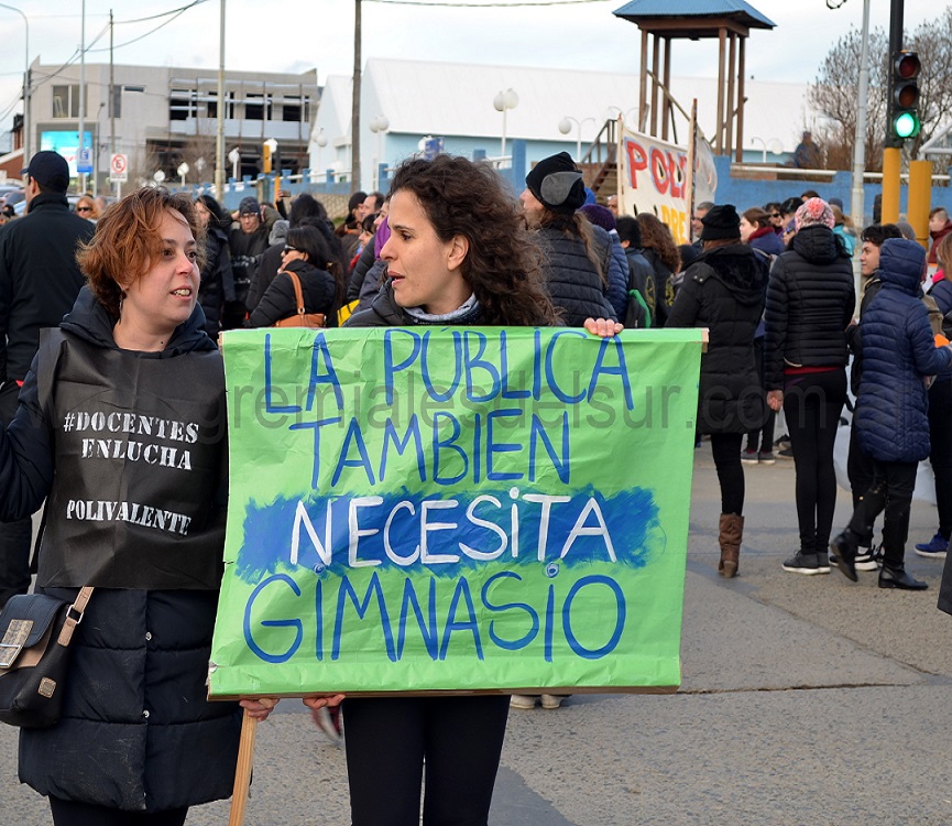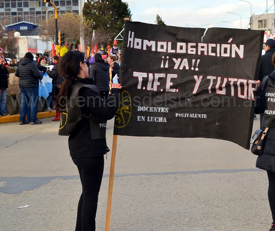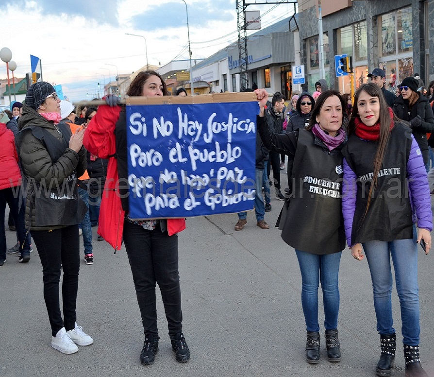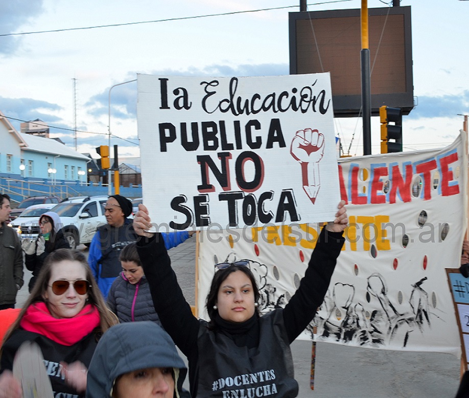 “Docentes exonerados por luchar, docentes que no cobran sueldos desde abril, cambio de régimen jubilatorio, despidos como en el caso de los Auxiliares Administrativos Docentes, ley de paritaria 424 que no se cumple, escuelas que se caen a pedazos, congelamiento salarial en contexto de inflación y tarifazos, titularizaciones que no se concretan, presupuesto 2019 con menos horas cátedras, colegios sin gimnasios”, fueron algunos de los tantos reclamos de los docentes expresados el sábado por la tarde en Río Grande.