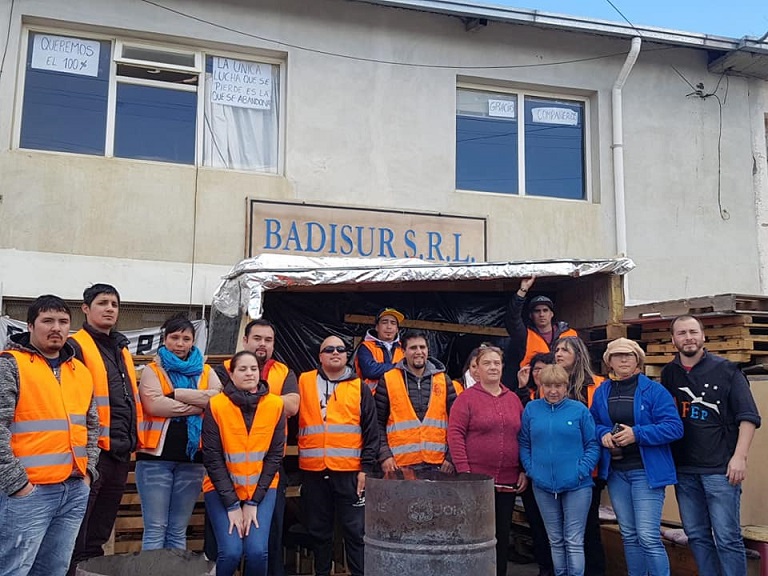 Por la tarde, los mismos sectores gremiales de la ciudad de Ushuaia se trasladaron hasta el parque industrial de la ciudad de Río Grande, a efectos de manifestar el apoyo y la solidaridad a los trabajadores que mantienen ocupada la planta de la empresa textil Badisur desde hace tres semanas, reclamando por los puestos de trabajo, o bien el pago de las 100% de las indemnizaciones.