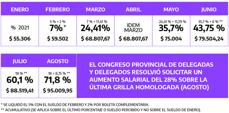 Pedir un 28% de aumento salarial para el último tramo del año, considerando el proceso inflacionario y para que nuestro salario se encuentre por encima de las estimaciones de inflación.